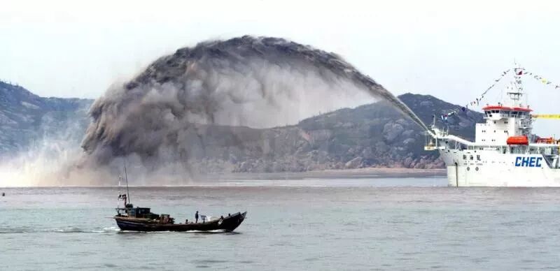 △2003年,洋山港区的吹泥船在吹沙填海(图片来源:解放日报)