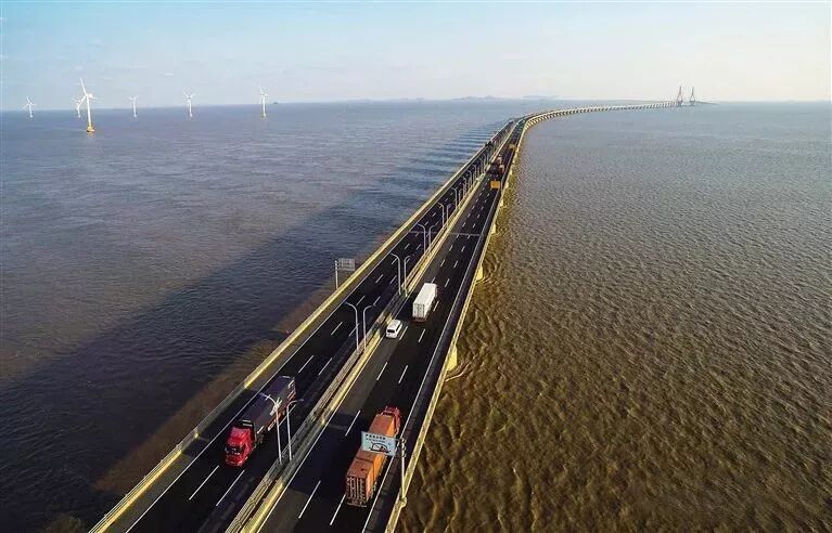 △建成后的东海大桥(图片来源:新华社)